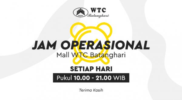Hello ... Mulai hari ini tanggal 13 Juni 2020, Mall @wtcbatanghari_official Buka setiap hari pukul 10.00 s/d 21.00 WIB.